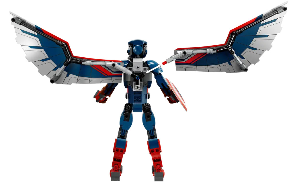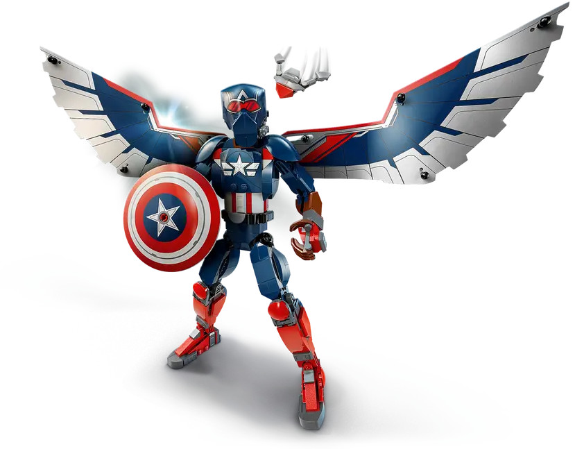 Captain America håller sin ikoniska sköld och har dessutom en byggbar Redwing-drönare fäst på ryggen, som enkelt kan tas loss för självständig lek.