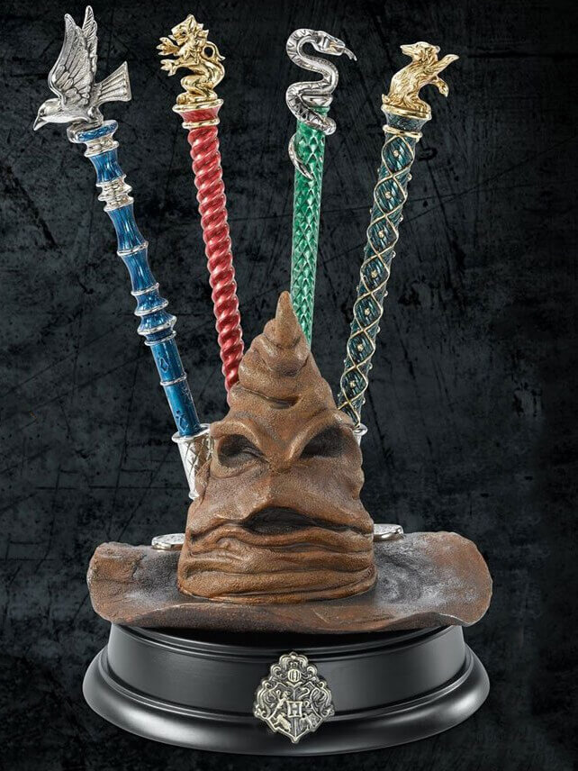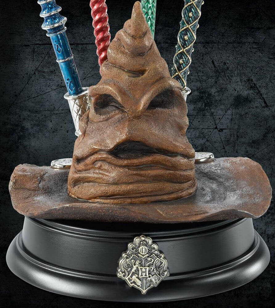 The Sorting Hat pen holder is made of fine cold cast porcelain and rests on a wooden base.