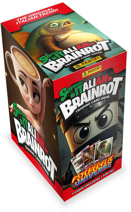 Kerää, vaihda ja pelaa 150 kortin kokoelman parissa, jossa yhdistyvät huumori, italialainen popkulttuuri ja yllätyksellinen brainrot-meininki. Jokaisessa pakkauksessa on 7 ainutlaatuista korttia.