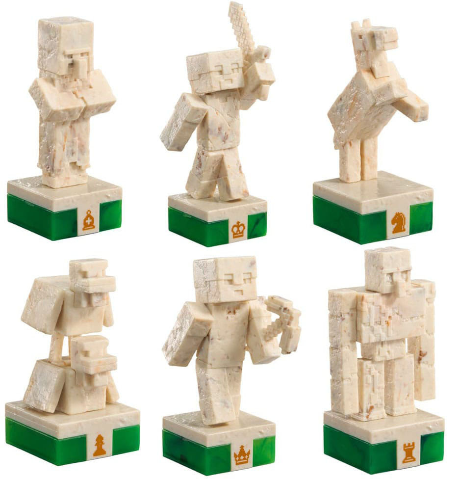 Neliönmuotoinen shakkilauta koostuu neljästä toisiinsa lukittavasta kvadrantista, ja siinä on puun kaltainen kehys "ruohon" ympäröimän pelialustan ympärillä, jossa on teksturoituja vihreän sävyjä. Setti sisältää 32 pelinappulaa, joiden tekstuurit ja viimeistely muistuttavat marmoroitua kiveä, obsidiaania, punaista kiveä tai smaragdinväristä - pelaa ystävällisinä Overworld-hahmoina tai asettuu synkkien vihamielisten vihollisten puolelle.