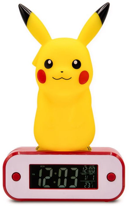 The 18 cm tall Pikachu alarm clock also features an easy to read LCD digital display with back light and alarm function.