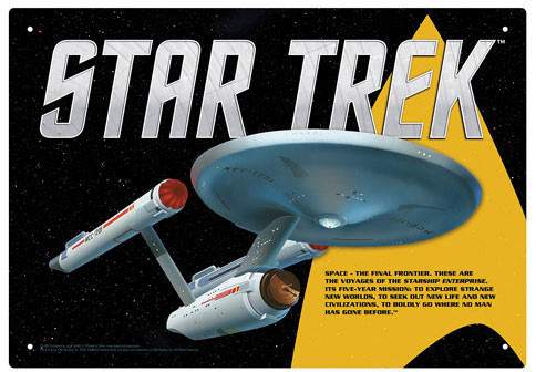 Set phasers to "Awesome!" This sweet sign will send fans of Star Trek: The Original Series to Warp 9! The Star Trek Enterprise Tin Sign measures approximately 20 x 29 cm.