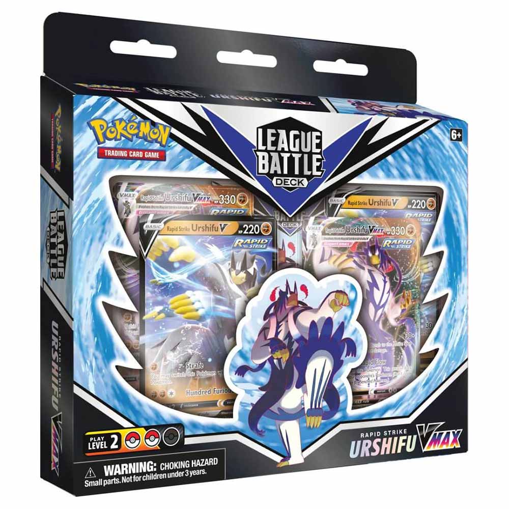 Choose your moment, and strike with raw power! Or strike a thousand times—each hit bringing you one step closer to victory! Single Strike Urshifu VMAX or Rapid Strike Urshifu VMAX is yours in a powerful, League-ready deck for skilled Trainers and Pokémon TCG players. With a slew of cards including premium foil cards, sought-after power cards, and a well-tuned set of Pokémon and Trainer cards, these League Battle Decks do more than feature one of the most popular Pokémon of the Galar region: they put together all the elements to support you in your next match against friends and neighbors, in person or online! This deck is ready to play and loaded with the potent combos of either Single Strike Urshifu VMAX or Rapid Strike Urshifu VMAX!