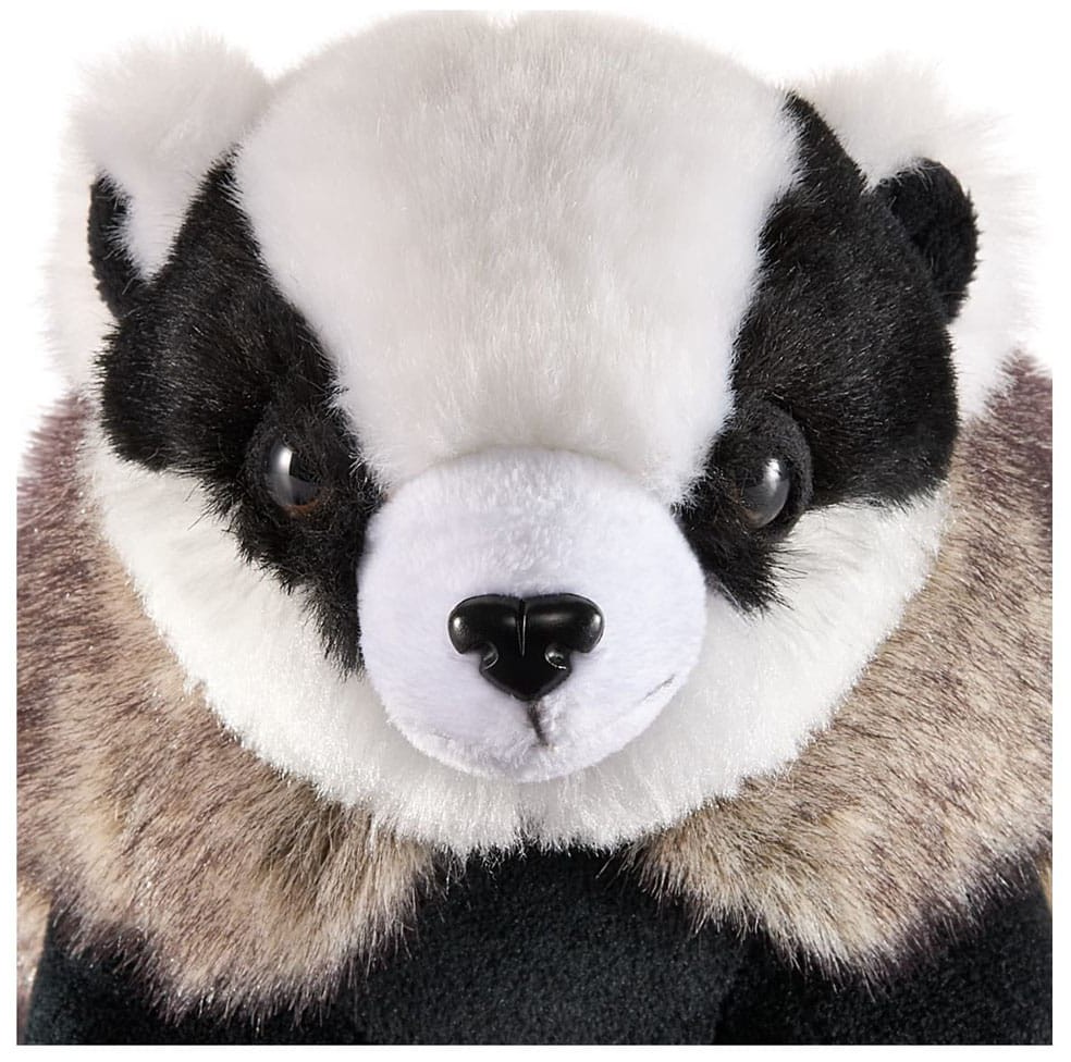 This badger plush is approximately 17 cm tall and features a Hufflepuff crest under the badger's paw.