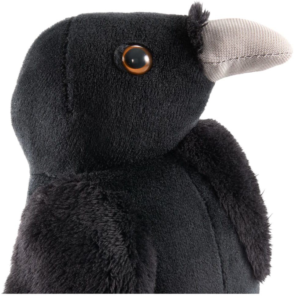 This raven plush is approximately 14 tall and features a Ravenclaw crest under the bird's foot.