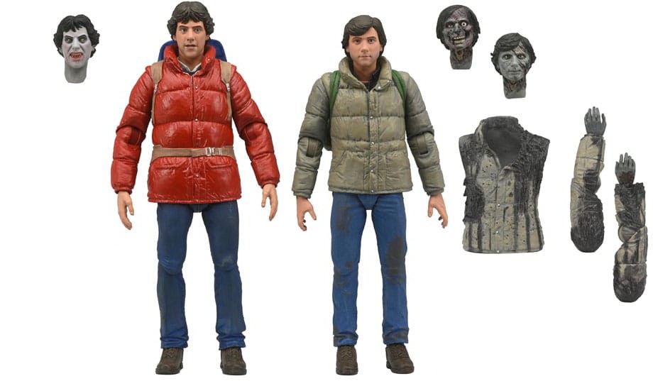 Introducing NECA's latest figures from An American Werewolf in London! The classic 1981 horror comedy film follows David Kessler and Jack Goodman, two college friends from New York City, on an increasingly terrifying backpacking trip through England. When they stumble upon a pub called The Slaughtered Lamb during a full moon night, the hostile locals have one piece of advice: Stay on the road and keep clear of the moors! This long-awaited action figure 2-pack features David and Jack as they fatefully wander the moors before being attacked by a viscous werewolf. Both figures are fully poseable and stand in NECA's 7-inch scale. David includes an interchangeable "nightmare" expression, and Jack includes swappable coat, arms, and multiple expressions to recreate the various stages of decay seen throughout the film. The duo comes in a collector-friendly window box with opening flap that's great for display.