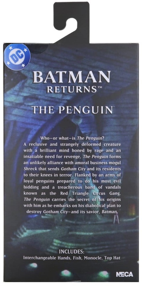 NECA esittelee tämän vaateasuisen The Penguin -toimintahahmon Tim Burtonin vuoden 1992 elokuvasta Batman Returns, jossa Danny DeVito esittää ikonista pahista unohtumattomasti.