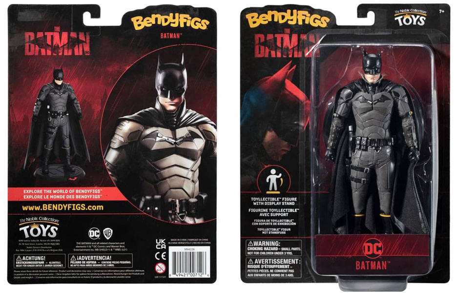 Based on the latest interpretation of the Dark Knight, this 7.25"/18.5cm Bendyfig accurately recreates the costume of Robert Pattinson's Batman from the highly anticipated 2022 Warner Bros. movie, "The Batman".