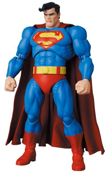 The next figure in Medicom's Miracle Action Figure EX (MAFEX) lineup is Superman as he appears in graphic novel "The Dark Knight Returns". It stands approx. 16 cm tall and comes with accessories and interchangeable parts in a window box.