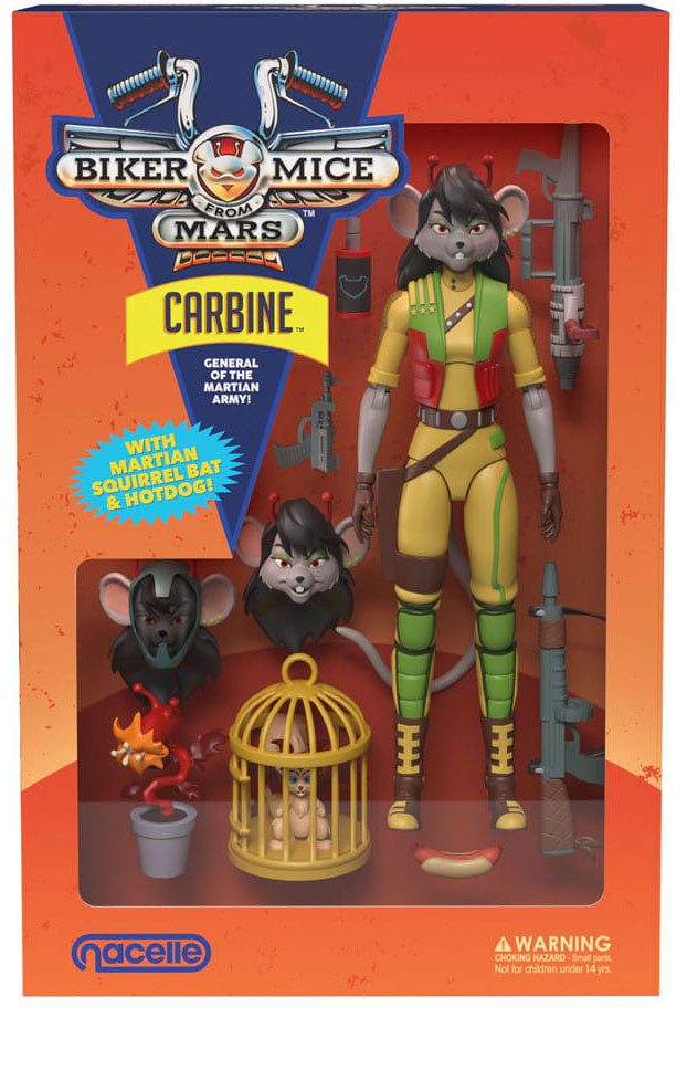 Carbine, Marsin armeijan vankkumaton ja sitkeä kenraali, johtaa hyökkäystä pahoja plutarkialaisia hyökkääjiä vastaan. Vaikka hän työskentelee Marsin hallitukselle, hän on myös pitkäaikainen liittolainen vapaustaistelijoille ja Biker Miceille, erityisesti Throttlelle, jonka kanssa hänellä on monimutkainen suhde. Olipa kyse sitten virallisista tai salaisista operaatioista, hänen kiihkeä lojaalisuutensa Marsia kohtaan ajaa hänet väsymättömään pyrkimykseen palauttaa planeetan aikoinaan rehevä maisema, jossa marsilaiset oravanlepakot laidunsivat vaaleanpunaisia taimia sopusoinnussa.