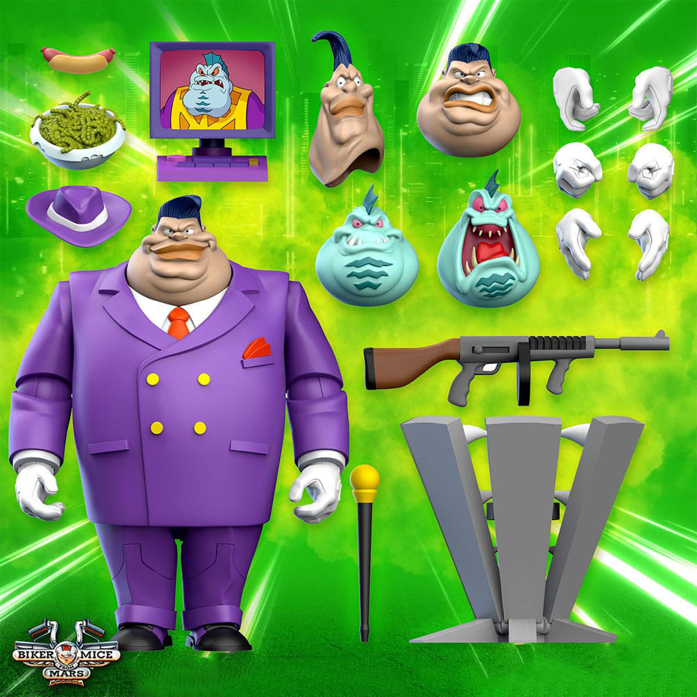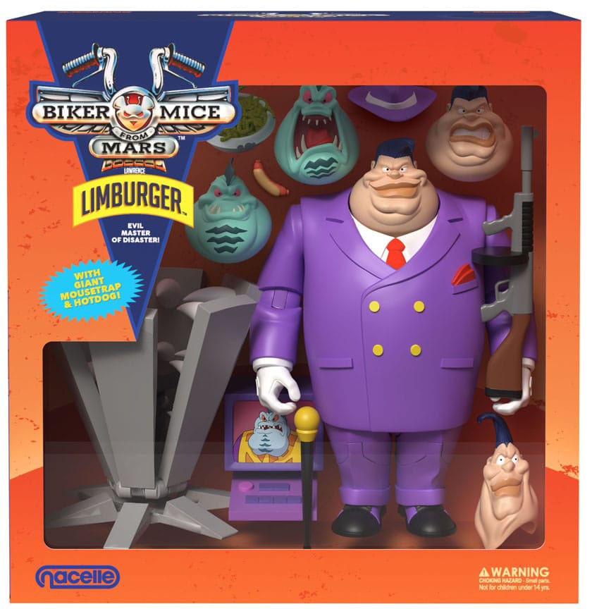 A Fish-faced schemer and smellier than moldy cheese, Lawrence Lactavius Limburger is the evil Plutarkian leader of the coup on Chicago. Disguised as a human businessman, Limburger has fooled the citizens of Chicago into thinking he will end crime. In reality, he orders his wacky henchman, Greasepit and Dr. Karbunkle, to strip-mine the city of its natural resources. The Biker Mice know Limburger's true mission: deplete Earth's assets for the High Chairman of his home planet, Plutark, just like he did on Mars. If the Biker Mice can get past Limburger's rancid stench, it's tail whippin' time! Someone get this crook some deodorant!