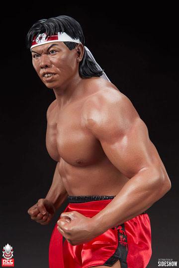 The Bolo Yeung: Kung Fu Tribute 1:3 Scale Statue measures 23" tall and 19.5" wide as an expertly sculpted homage to the renowned Chinese actor, bodybuilder, and martial artist famed for his antagonistic action movie roles opposite the likes of Jean-Claude Van Damme and others. This ultra-realistic and highly detailed statue showcases the athleticism, intensity, and immense discipline exhibited by Yeung in celebrated film appearances that made him a fan-favorite on-screen fighter.
