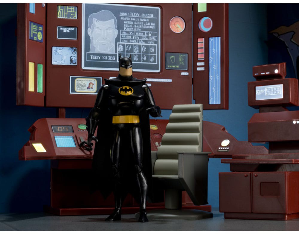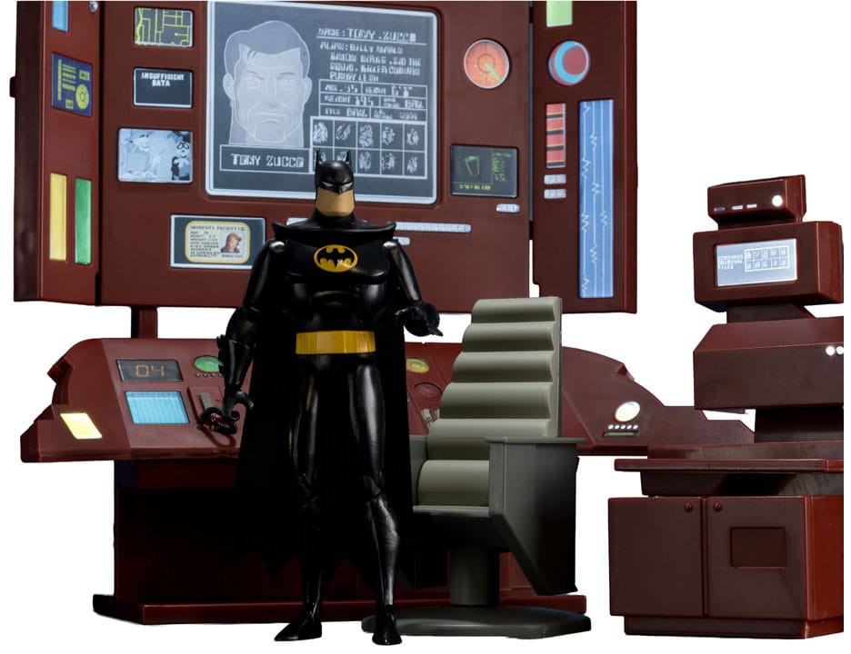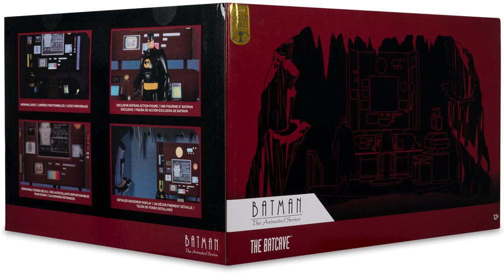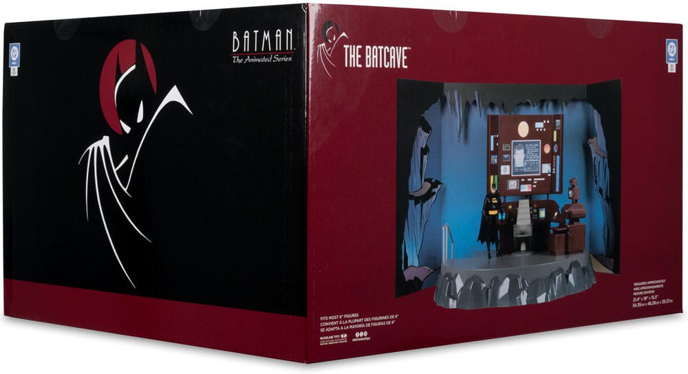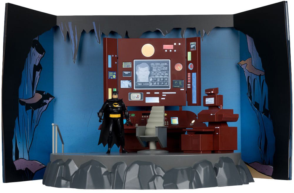 Batcave-dioraama perustuu Batman: The Animated Series -sarjaan ja sisältää valaistun Bat-tietokoneen sekä täyden arkin tarroja luolan personointiin.