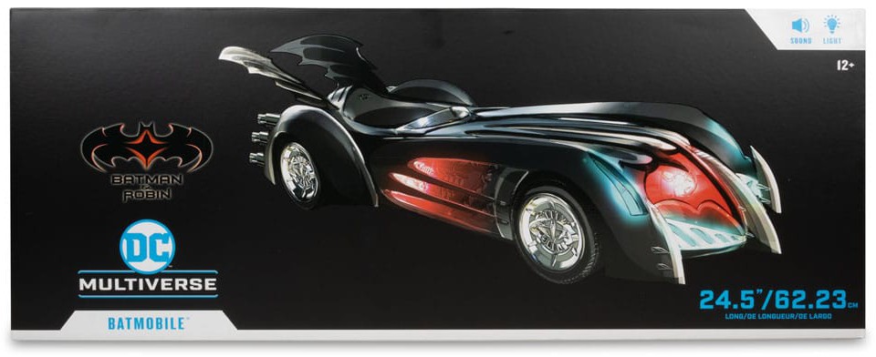 - Batmobile is made to fit Batman (Batman & Robin) and select other 7in figures.