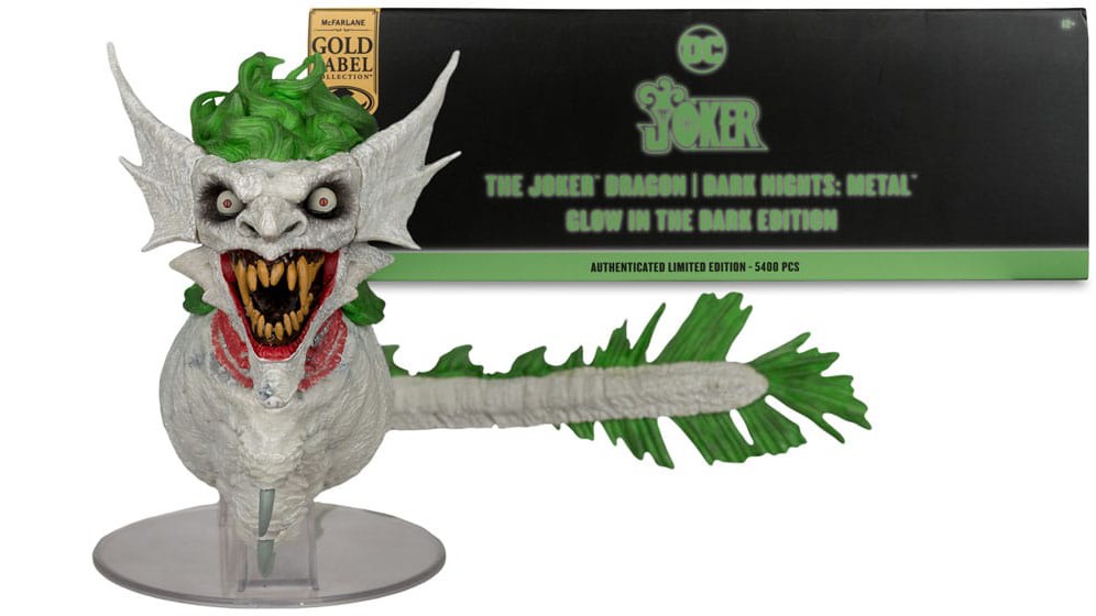 Esitä kysymyksesi tuotteesta "DC Multiverse: Dark Nights Metal - The Joker Dragon Glow in the Dark Edition (Gold Label) ".