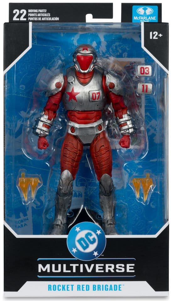 Tämä 7 tuuman mittakaavan DC Multiverse -toimintahahmo on erittäin yksityiskohtainen ja varustettu Ultra Articulation -rakenteella, jossa on jopa 22 liikkuvaa niveltä. Mukana tulee rakettiefektejä, numerokilpiä, näyttelyalusta sekä keräilykortti, jossa on hahmotaide ja elämäkerta.