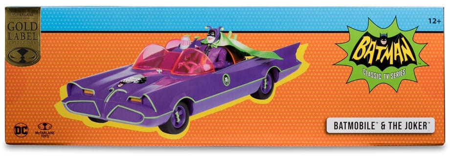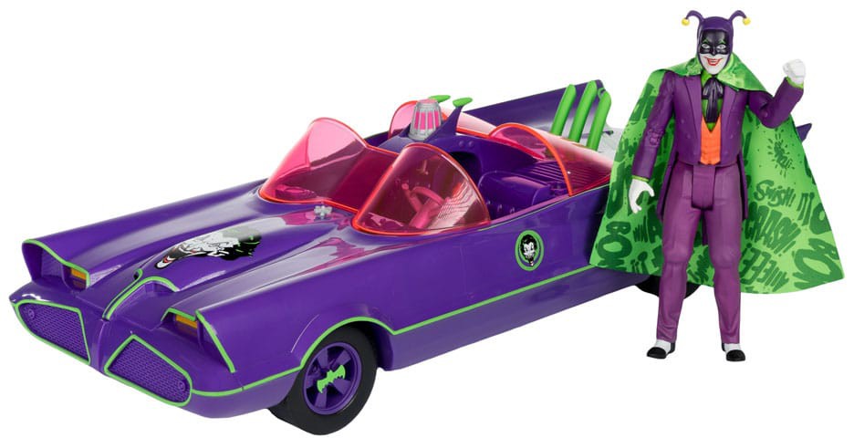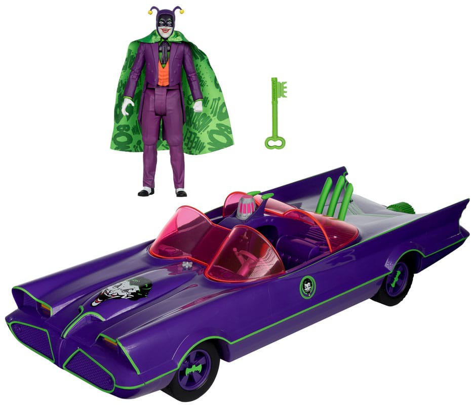 Esitä kysymyksesi tuotteesta "DC Retro: Batman 66 - Batmobil with Joker (Gold Label)".