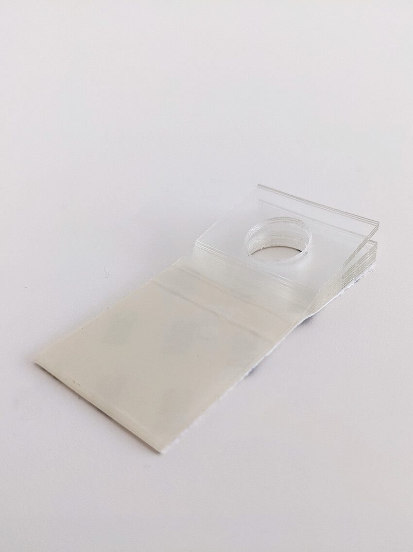 - Stiff polyester (343µm) header gives clean product display.