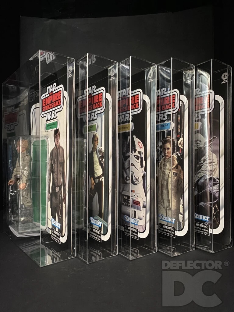 Custom designed cases that fit perfectly to protect your on-card Star Wars Black Series 40th Anniversary cards and figures from damage, shelf wear and prevent warping. Perfect for either showing off your figures in your collection or for storing them safely tucked away!