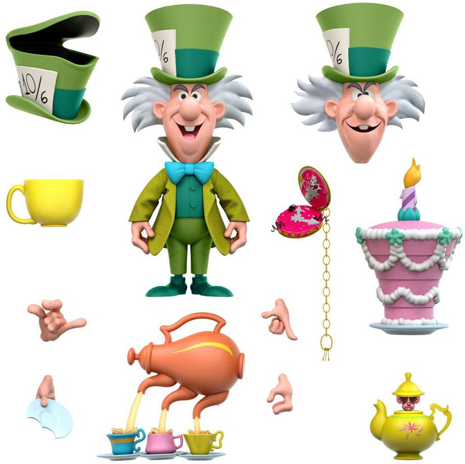Just as he appears in Disney's Alice in Wonderland, the Mad Hatter ULTIMATES! deluxe action figure has everything you need to throw an amazing tea party! This 7" highly-articulated, made-to-order Mad Hatter figure comes with a soft goods coat, alternate heads and hands, and additional iconic accessories so you can celebrate 70 years of Disney's Alice in Wonderland, and your unbirthday too.