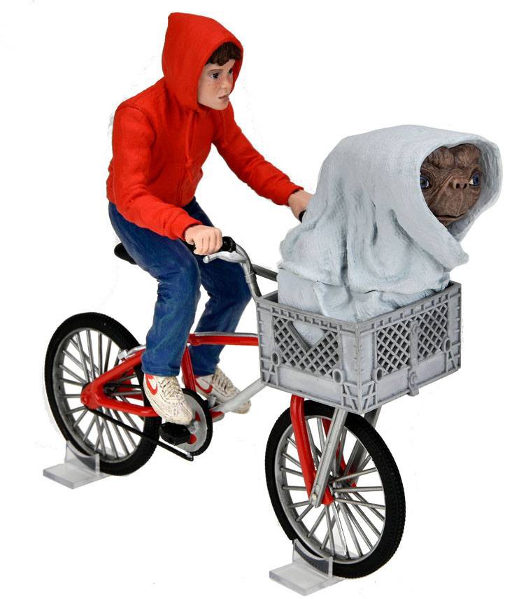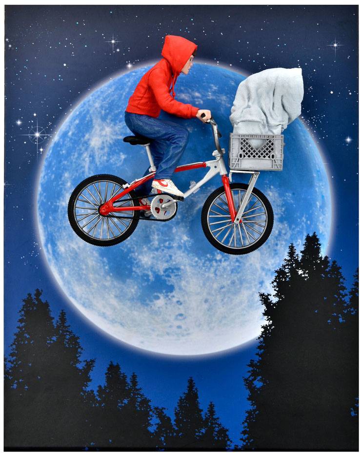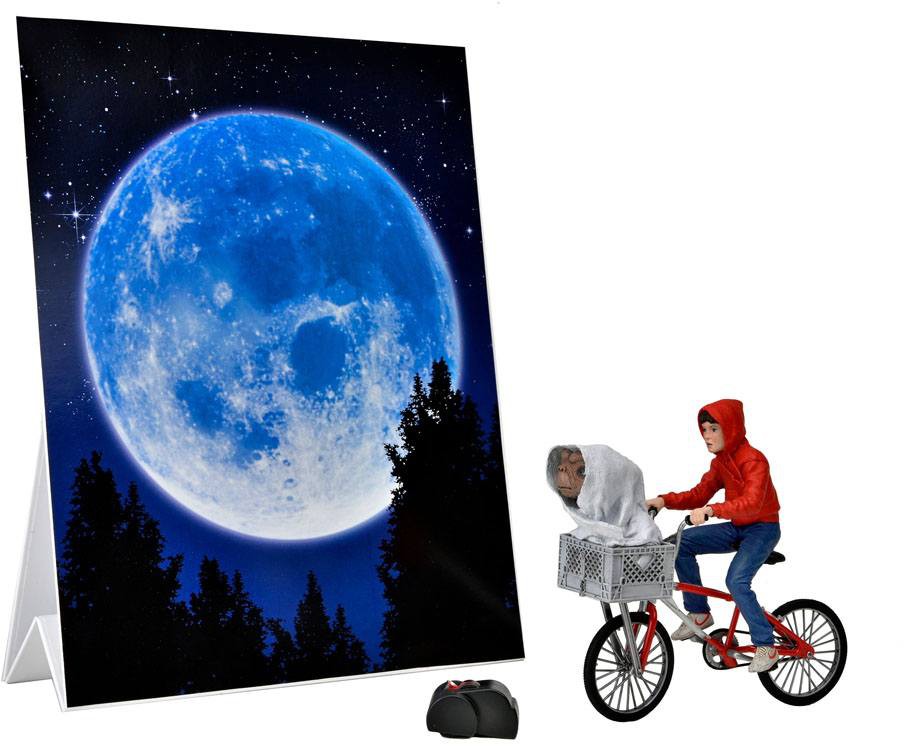 For the 40th anniversary of the beloved classic, bring the magic and excitement of E.T. The Extra-Terrestrial into your world. As your friendship with E.T. grows, relive all of his earthly encounters or look to the stars and create your own unforgettable interactive adventures. E.T. and Elliott on Bicycle features pull-back-and-go action! And to re-create the famous flying scene, you can attach the figure to a freestanding movie backdrop for an iconic image. The 7" scale figure (approximately 5" long) comes in display-friendly 40th anniversary window box packaging with opening front flap.
