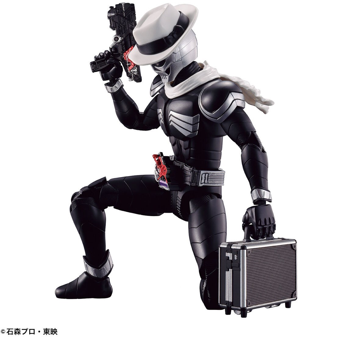 Kamen Rider Skull from "Kamen Rider W" joins the Figure-rise Standard model-kit lineup from Bandai! His characteristic head is modeled in great detail, with silver-finished parts for an extra metallic feeling. His iconic hat is of course included, along with an extra brim with a rip in it. The Skull Memory can be attached to the Skull Magnum; in addition to the normal mode, the maximum mode can be reproduced by rotating the barrel. A briefcase that can be opened and closed is also included; the Double Screwdriver, Skull Memory and Gaia Memory included with the Figure-rise Standard Kamen Rider W Cyclone Joker (sold separately) can be stored inside. Interchangeable hands are also included. Order him for your own collection now!