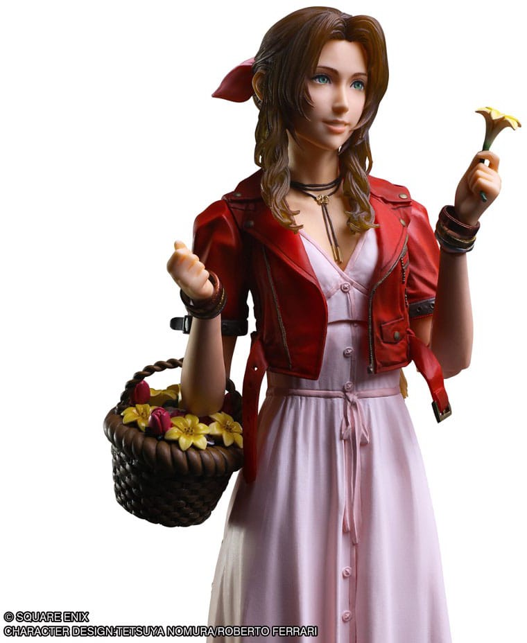 Except for the face parts, hair, and ribbon, the figure is identical to the FINAL FANTASY VII REMAKE PLAY ARTS KAI Action Figure – Aerith Gainsborough.