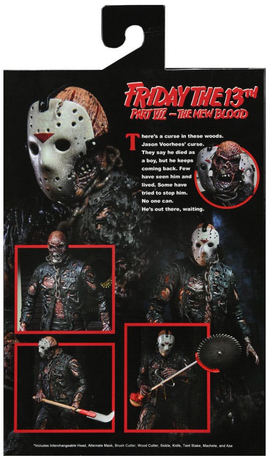 From the Friday the 13th franchise, we are happy to announce the definitive collector's version of Jason as he appeared in Part 7 will be back in Ultimate form. This articulated 7" scale action figure includes two interchangeable heads and is loaded with accessories. Window box packaging