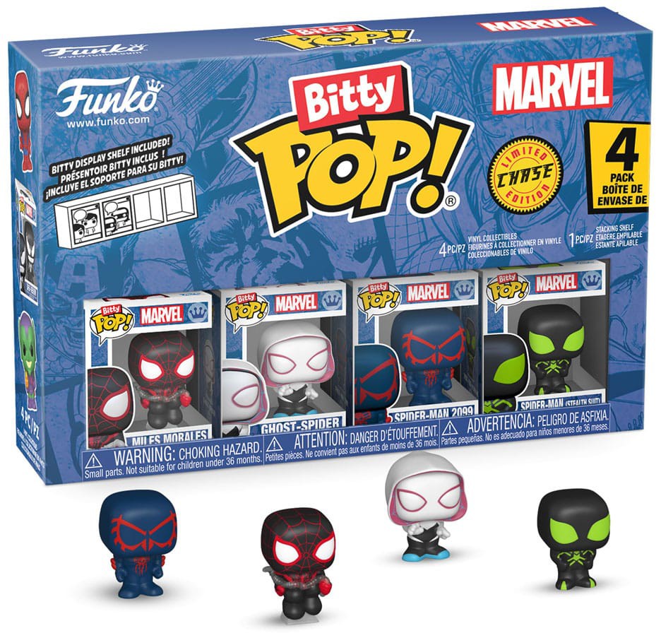 Esitä kysymyksesi tuotteesta "Funko Bitty POP! Spider-Man 4-Pack Series 2".
