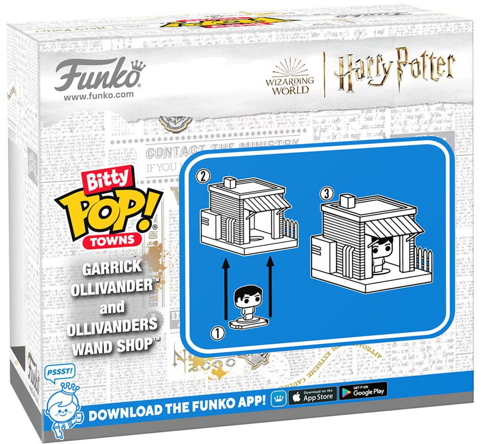 Esitä kysymyksesi tuotteesta "Funko Bitty POP! Towns: Harry Potter - Garrick Ollivander and Ollivanders Wand Shop".