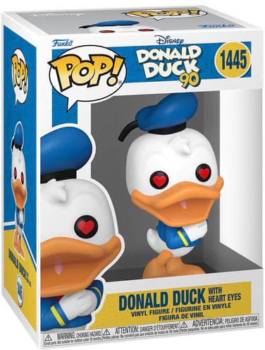 Esitä kysymyksesi tuotteesta "Funko POP! Disney: Donald Duck 90th Anniversary - Donald Duck with Heart Eyes".