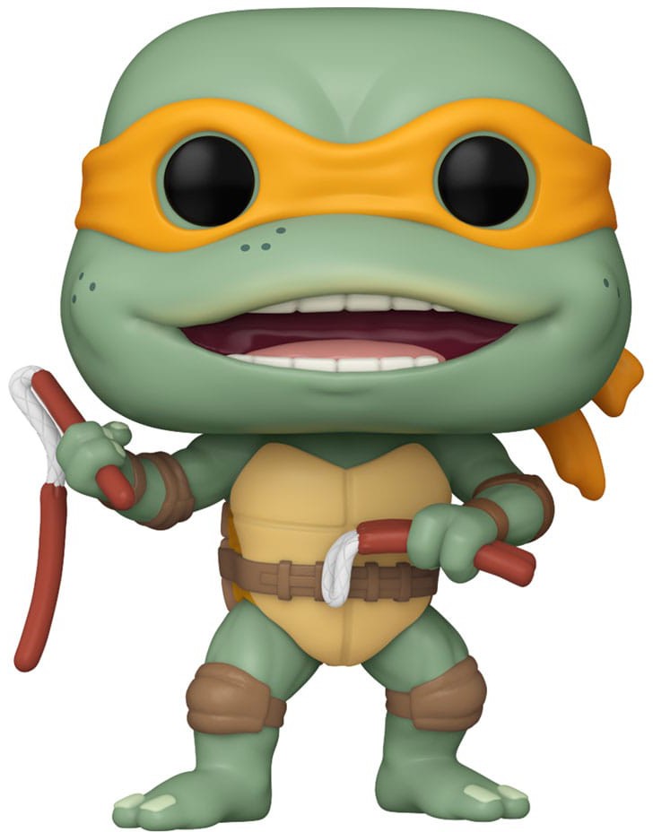 Esitä kysymyksesi tuotteesta "Funko POP! Movies: Teenage Mutant Ninja Turtles - Michelangelo with Sausage Link Nunchucks".
