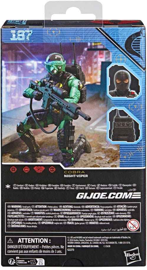 Uutena G.I. Joe Classified Series -sarjassa Night-Viper on valmis seikkailuun, ja hahmossa on useita liikkuvia niveliä monipuolisia asentoja varten. Hahmo sisältää 7 varustetta, kuten vaihdettavan kypäräpäisen pään yökiikarilla, repun, 2 veistä ja aseita.