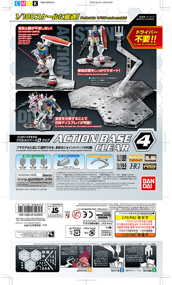 Assemble your own display stand for your Gundams and other mecha model kits! This new base from Bandai features three bases (each 2.3cm by 2cm) that can all interlock to form one base, each with lots of openings for support poles. A long support pole 11 cm in length is included, as are joint parts and other support parts. Perfect for larger kits like Master Grades (MG) and RE/100.