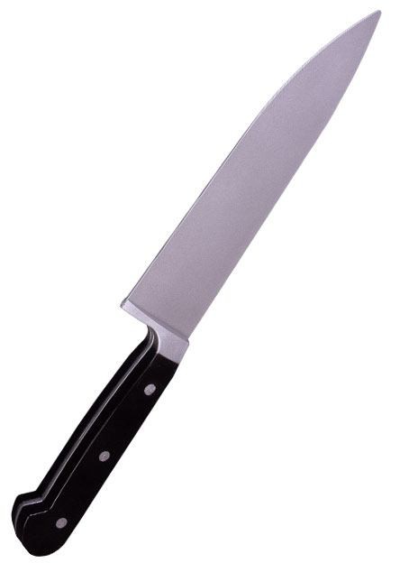 Tämä hämmästyttävä rekvisiitta on valettu täsmälleen samasta keittiöveitsestä, jota käytetään Halloween 2018 -elokuvassa. Veitsi on valettu ruiskumuovista ja maalattu näyttämään hyperrealistiselta ilman, että on vaarallista huijata tai herkutella oikealla keittiöveitsellä.