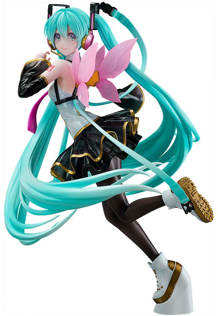 On the figure, her costume has been redesigned to give the appearance of her singing and dancing on stage. The torso of the dress has a glossy fabric, while the arm covers and skirt are made of clear parts with a painted gradient, for a lightweight effect. The end result is a figure made with careful attention to the different textures. We hope you will enjoy Miku's sweet smile to the fullest at your side.