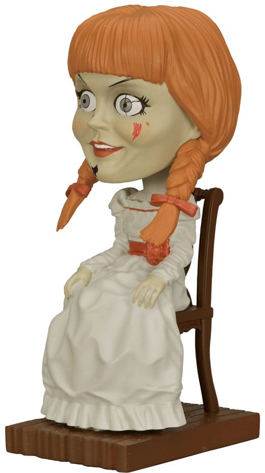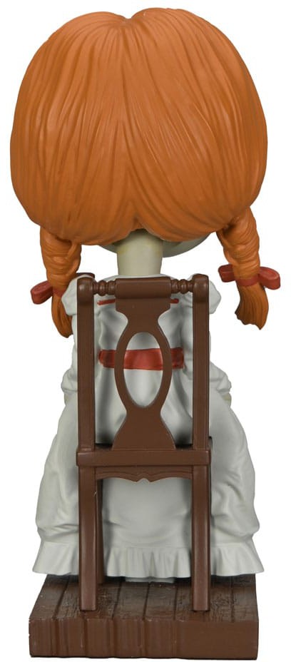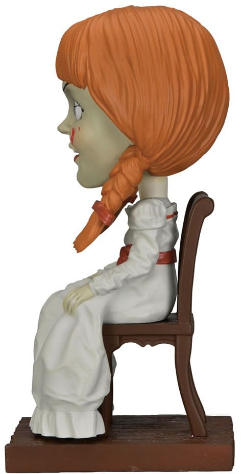 The possessed doll Annabelle appears throughout The Conjuring Universe films and in her own spin-off movies. This addition to NECA's popular Head Knocker line brings you the terrifying doll Annabelle sitting in her chair, cast in resin and then hand painted for incredible detail. Stands 7 inches tall with bobbling head and comes in collectible matte packaging with spot gloss finish.