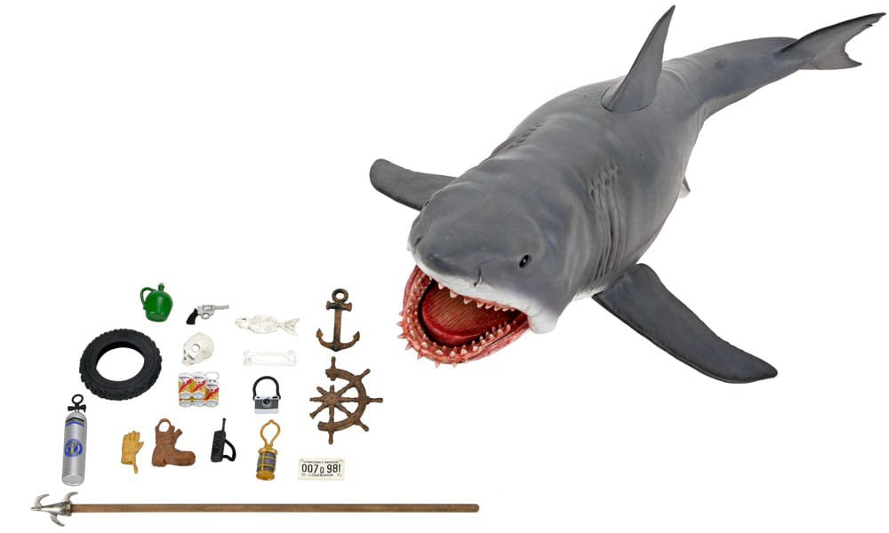 Juhlista 'Tappajahain' 50-vuotisjuhlaa tällä yksityiskohtaisella 38 cm pitkällä hahmolla NECAlta. Hahmossa on autenttinen muotoilu, joka heijastaa elokuvan haita, ja se toimitetaan yli 15 lisävarusteen kanssa, mukaan lukien ankkuri, saapas, kalanruoto, pääkallo, rengas, lyhty ja hansikas. Täydellinen keräilijöille ja faneille, jotka haluavat kokea uudelleen klassisen elokuvan jännityksen!