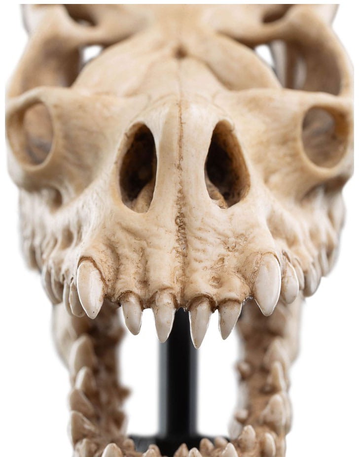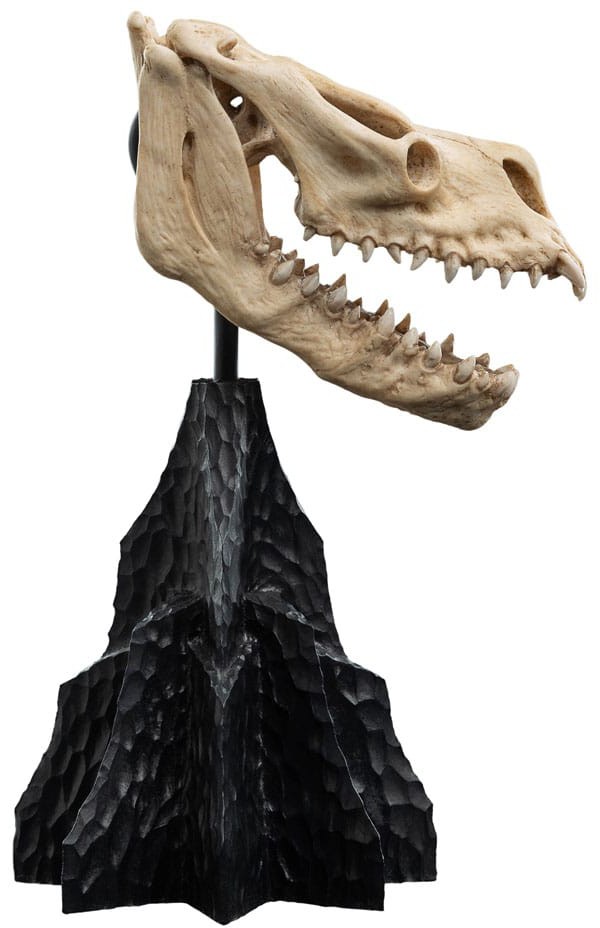 Nazgûlin pelätyn hevoseläimen, Fell Beastin, pitkänomainen matelijakallo paljastaa painajaismaisten mittasuhteiden omaavan olennon. Terävien hampaiden epäsäännöllinen hammastus ja kallon laajat harjanteet viittaavat uskomattoman julmaan petoeläimeen. Kevyt mutta vahva luusto viittaa siihen, että se on sopeutunut lentämiseen. Tämä yksilö on erityisen valaiseva, kun otetaan huomioon näiden petojen synkkä ja aavemainen läsnäolo Keski-Maan taivaalla. Pienikokoinen mutta yksityiskohtainen esine, jonka jokainen pienoiskallo tarjoaa syvällisen käsityksen Keski-Maan anatomiasta. Täydennä kokoelmaasi tällä ainutlaatuisella kuratoitavalla käärmeellä ja tutustu näihin olentoihin ennennäkemättömällä tavalla.