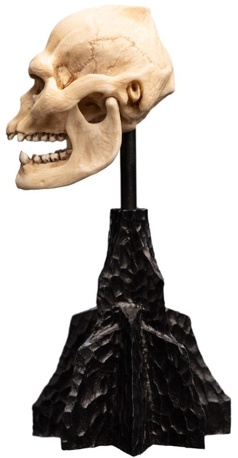Lurtzin, Saruman Valkoisen kasvattaman pelottavan olennon, kallossa on vankat ja pelottavat piirteet, jotka viittaavat hänen soturimaisuuteensa. Lurtzin voimakkaat poskipäät ja voimakas leuka kuvastavat Uruk-hain raakaa voimaa ja säälimätöntä aggressiivisuutta. Lurtz on todiste synkästä jalostustaidosta, jota korruptoituneet Istarit käyttivät pyrkiessään hallitsemaan Keski-Maata. MINIATUURIKALLOT: KESKI-MAAN KURATIO Jokainen pienoiskallo, joka on pienikokoinen mutta yksityiskohtainen esine, tarjoaa syvällisen käsityksen Keski-Maan anatomiasta. Täydennä kokoelmaasi tällä ainutlaatuisella kuratointikokoelmalla ja tutki näitä olentoja ennennäkemättömällä tavalla.