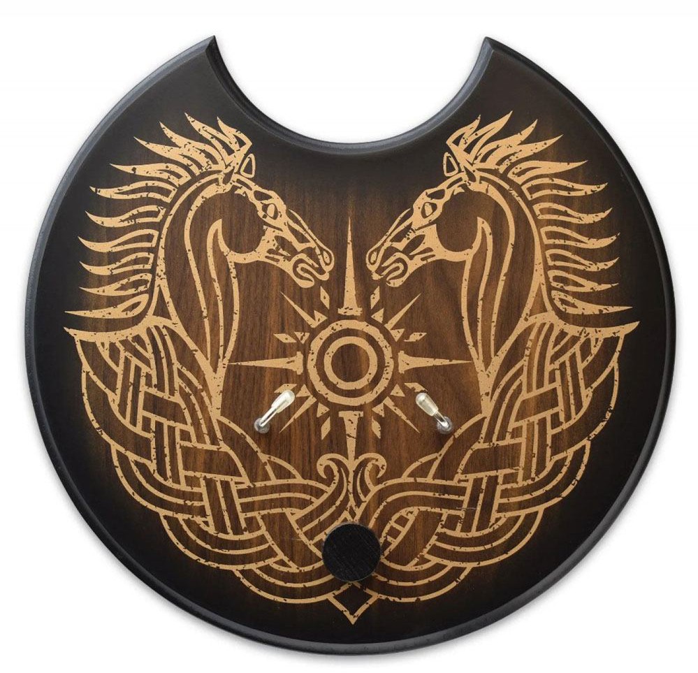 The sword of Théodred, fallen son of King Théoden. Théodred 's sword was the mate to the sword of Éowyn, his cousin. It was virtually identical, except for its green enameling on the hilt and green leather grip. This authentically detailed sword replica is a reproduction of the actual filming prop sword crafted by Weta Workshop of New Zealand and used in The "Lord Of The Rings: The Two Towers" film presented by New Line Cinema. This meticulously detailed sword, with an overall length of 36 1/2", features a solid metal guard and pommel with an antique brass plated finish and a tough TPU grip. The 30 1/8" false-edged blade is crafted of tempered stainless steel with a wide filler groove. Each sword is individually serial numbered and presented with a wood wall display and certificate of authenticity.