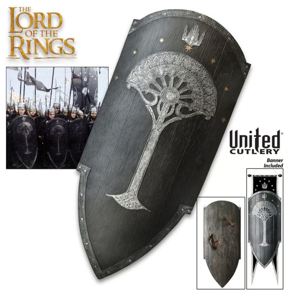 - Includes a cloth war banner of Gondor and wall mounting hardware