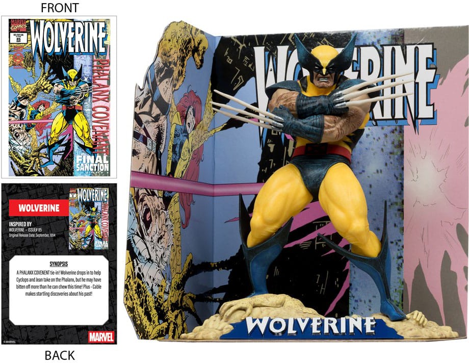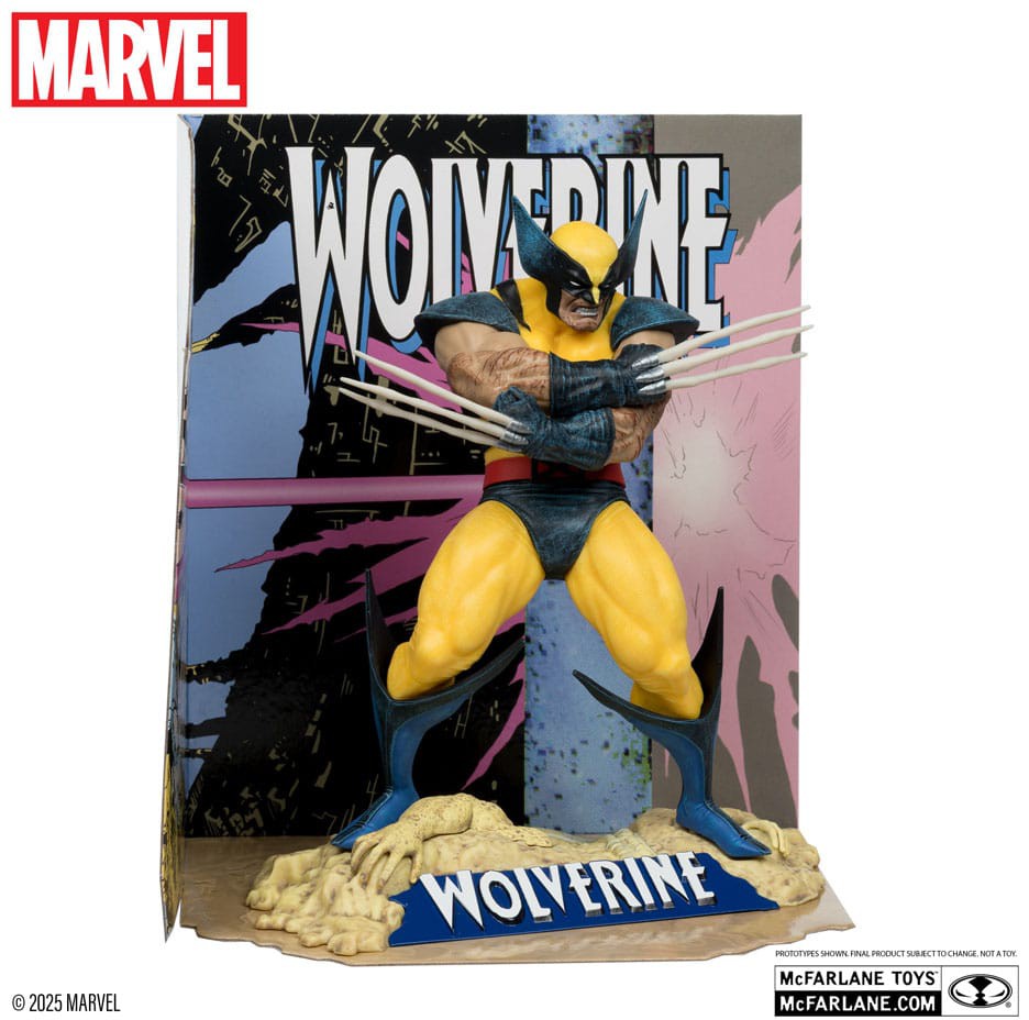 - Wolverine 1:10-mittakaavan keräilyhahmo ympäristöalustalla ja taustakohtauksella