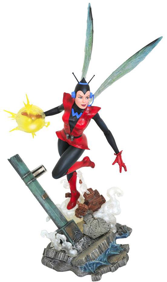 The winsome Wasp joins the fray, as this battle-inspired series of Marvel Gallery Dioramas continues! Flying above a battleground landscape, the Wasp charges up a bioelectric sting in this all-new sculpture made of high-quality PVC. Measuring approximately 13" tall, the Wasp features detailed sculpting and paint applications, and comes packaged in a full-color window box. Designed by Nelson X. Asencio, hand-sculpted by Jean St. Jean!