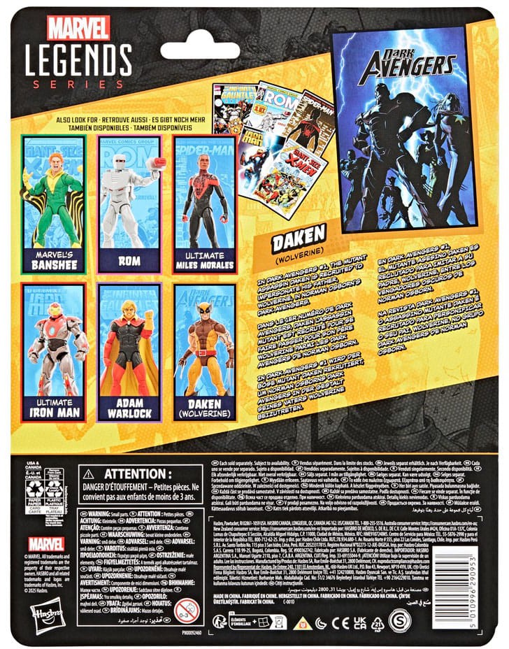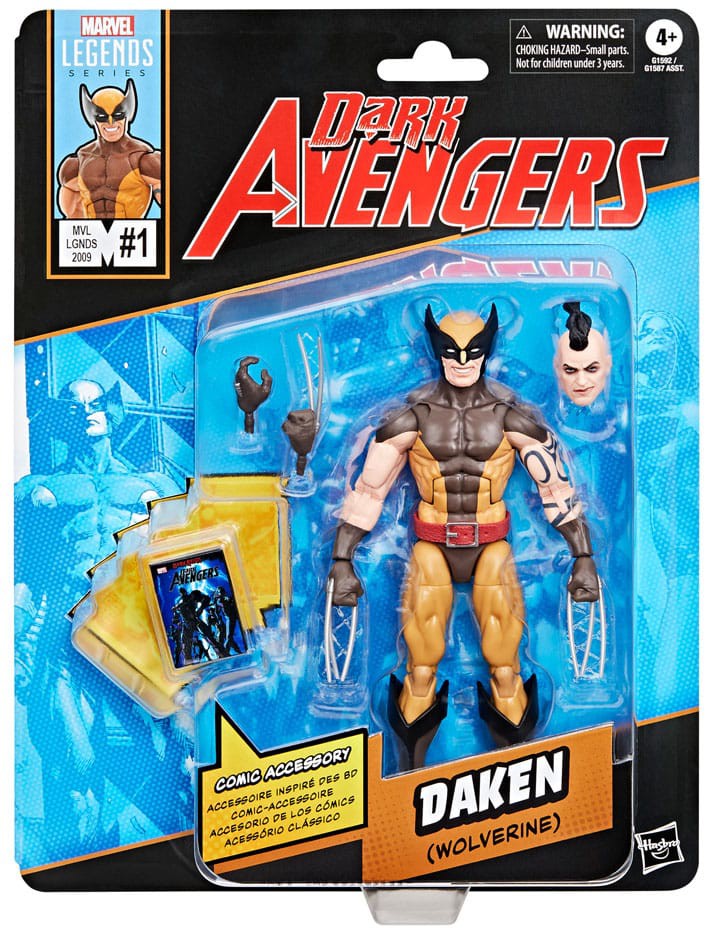 Bring the excitement and wonder of the Marvel Universe to your collection with Hasbro Marvel Legends Daken (Wolverine) figure! Detailed to look like the character’s appearance in Marvel's Dark Avengers #1 (2009), this collectible 6-inch scale Marvel figure is fully articulated with premium design and poseable head, arms, and legs. This Marvel action figure set comes with 4 accessories, including 2 alternate hands, and alternate head, as well as a 6-inch scale plastic comic book accessory featuring the cover of Dark Avengers #1 (2009). Hasbro Marvel action figures' 6 inch scale make them great for posing and displaying in fans' collections. Reimagine comics-inspired scenes on your shelf with Marvel Legends action figures and Marvel collectibles.