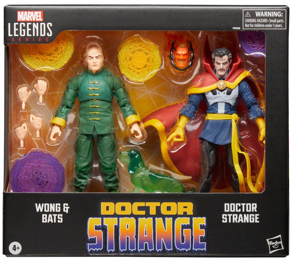 Marvel action figure set comes with 10 accessories, including alternate hands, spell FX, alternate Dormammu head for Doctor Strange, and translucent, non-articulated Bats.