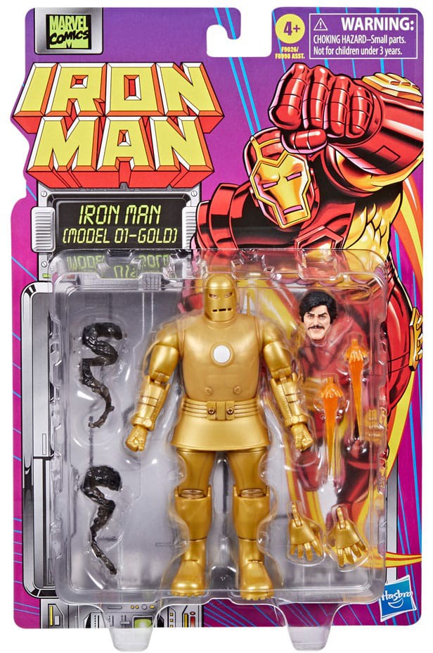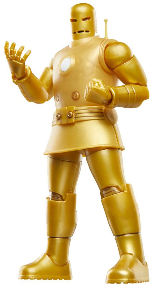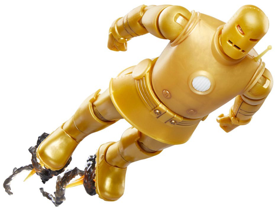 Bring the excitement and wonder of the Marvel Universe to your collection with Hasbro Marvel Legends Iron Man action figure! This collectible figure is detailed to look like the character from Marvel's Tales of Suspense comics. Features a gold version of Iron Man's original comic-based suit. 6-inch scale Marvel figures are fully articulated with poseable head, arms, and legs. Marvel action figure set comes with 7 accessories, including alternate hands and attachable blast FX, as well as an unmasked Tony Stark head. Hasbro Marvel action figures' 6 inch scale make them great for posing and displaying in fans' collections. Reimagine Iron Man comics-inspired scenes on your shelf with Marvel Legends action figures.