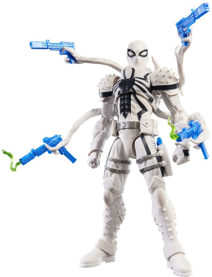 Tämä yksityiskohtainen 15 cm:n toimintahahmo perustuu Agent Anti-Venomin ulkonäköön Spider-Man-sarjakuvissa ja on täysin nivelöity dynaamista poseerausta varten.