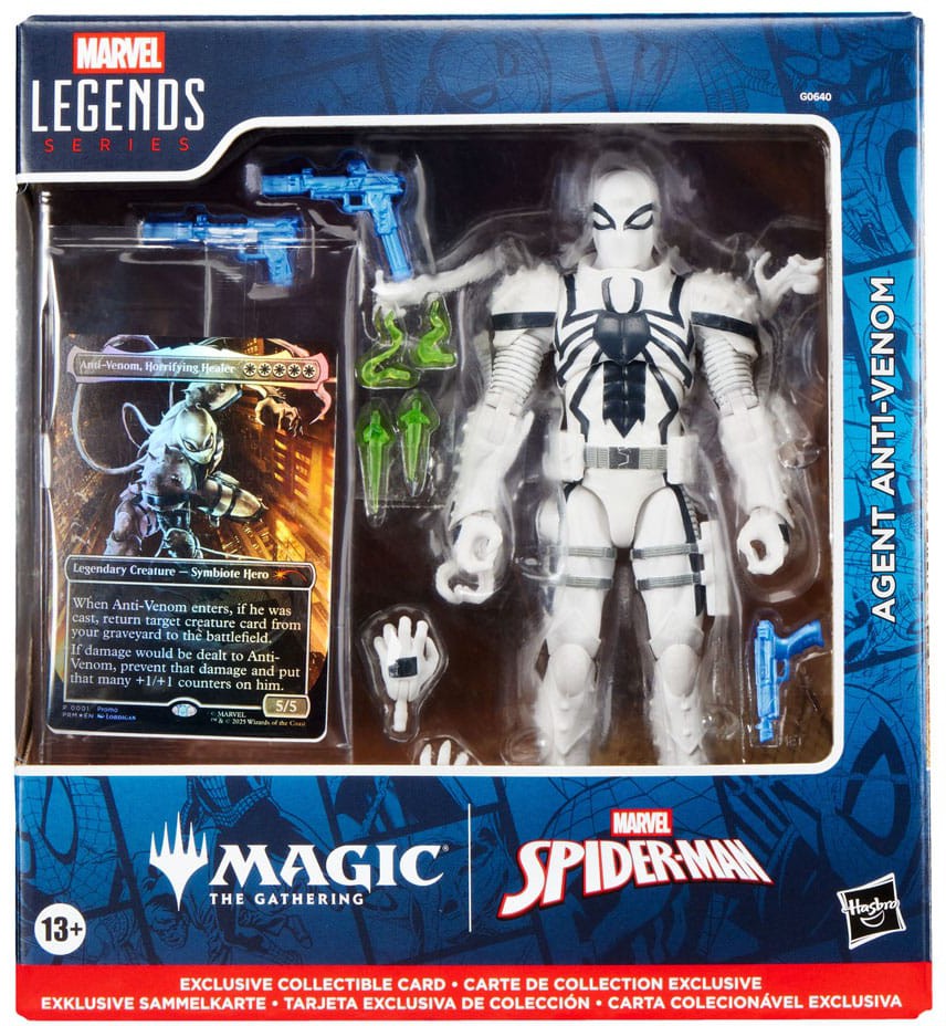 Bring the excitement and wonder of the Marvel Universe to your collection with the Hasbro Marvel Legends Series Agent Anti-Venom figure – now with a playable Magic: The Gathering card!