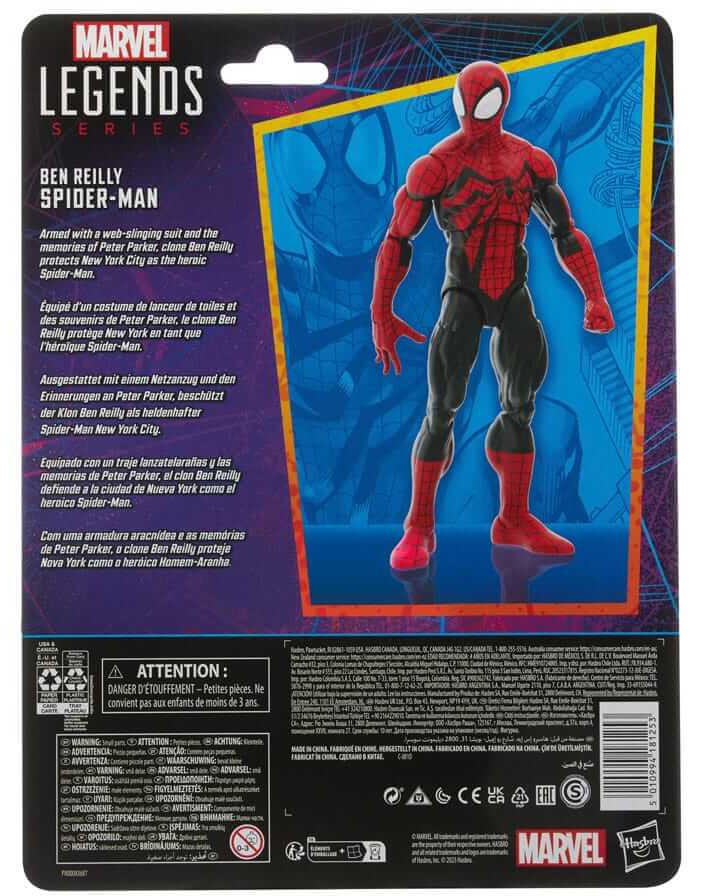 Tämä 15 cm pitkä, 6 tuuman kokoinen Marvel Legends -keräilyhahmo on suunniteltu näyttämään Ben Reillyltä Hämähäkkimiehenä Marvelin Amazing Spider-Man -sarjasta.